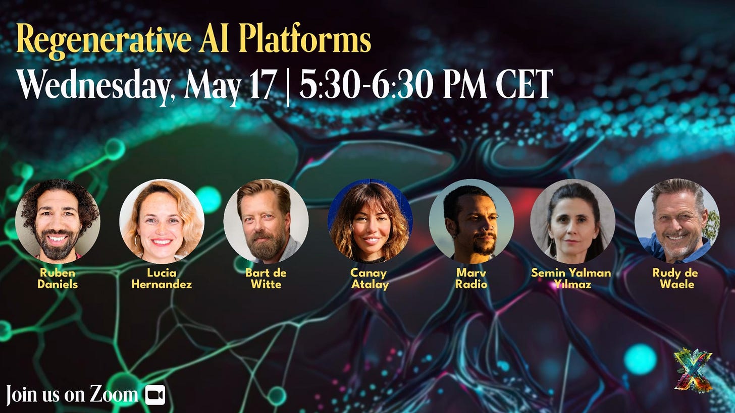 Today between 5:30 and 6:30 pm CET, we welcome Lucía Hernández - regenerative platform economy expert, Bart De Witte - founder HIPPO AI Foundation, and Ruben Daniels - founder of Memri for a dialogue and inquiry on how we can drive regenerative innovation in an equitable and sustainable way using Regenerative AI Platforms.